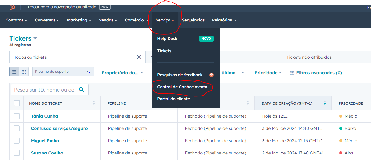 - A Central de Conhecimento disponível no Hubspot reúne informação essencial para o devido apoio ao cliente, nomeadamente as principais FAQ’s, NBA’s, procedimentos a adotar, entre outros.