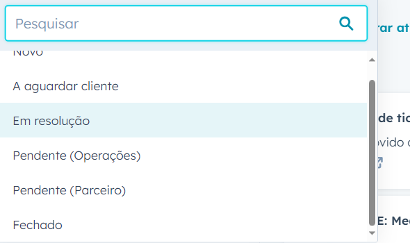 Contudo, é necessário alterar este status manualmente, quando o tema é escalado internamente (operações) ou aguarda resposta do parceiro: