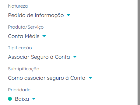 - Seja para e-mails ou chamadas telefónicas, é sempre necessário preencher os detalhes do ticket: natureza do pedido, produto/serviço, tipificação e subtipificação.