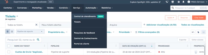 - Visualizar os tickets/pedidos dos clientes: Serviço -> Central de Atendimento ou Serviço -> Tickets