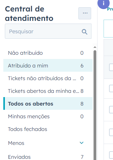 Na central de atendimento, é possível verificar os tickets abertos/por tratar na fila de trabalho individual ou na fila da equipa (bem como os tickets já tratados/respondidos).