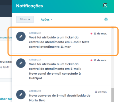 São despoletadas notificações a cada membro da equipa, sobre os tickets abertos ou em tratamento.
